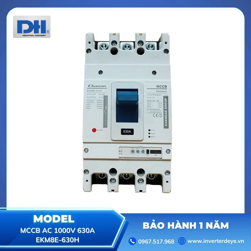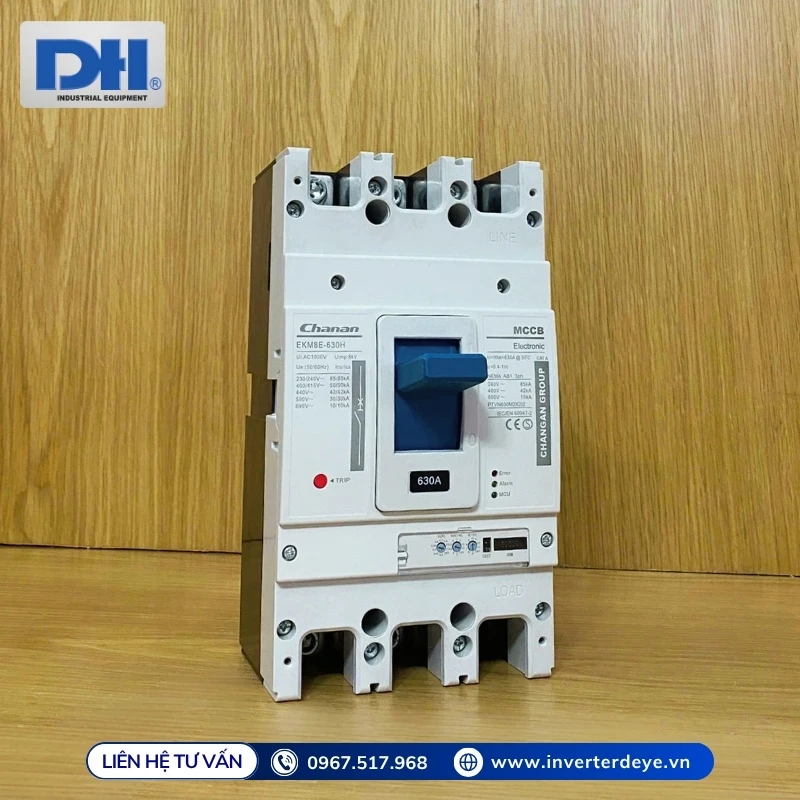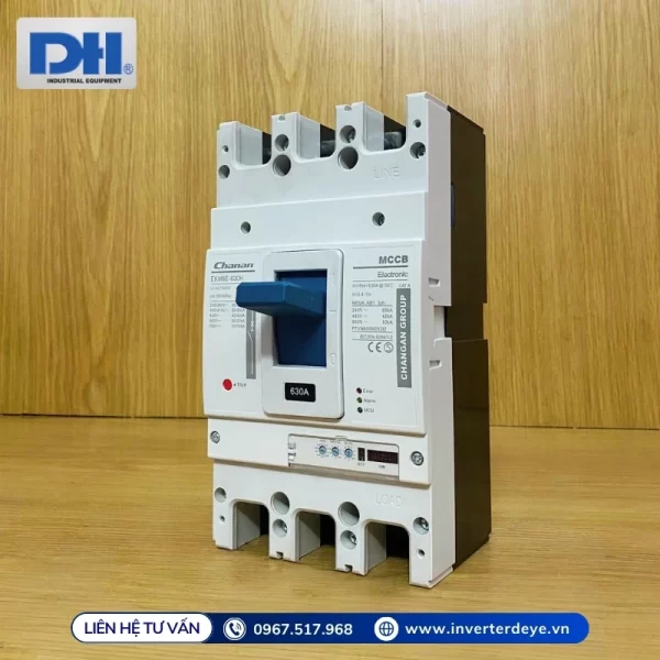 Aptomat khối 630A 3P Chanan hay còn gọi là MCCB khối, là thiết bị đóng cắt có độ an toàn và chính xác cao. Sản phẩm chuyên dùng cho hệ thống điện công nghiệp, hoặc tủ điện năng lượng mặt trời công suất lớn. MCCB 3 pha 630A 3P EKM8E-630H có dòng cắt ngắn mạch đến 42kA (480V~), trang bị cổng kiểm tra và giao tiếp cùng đèn báo hiệu tiện dụng. Hiện nay, sản phẩm được Solar DH phân phối chính hãng tại Việt Nam, đảm bảo khả năng bảo vệ vượt trội và chất lượng đạt chuẩn quốc tế.