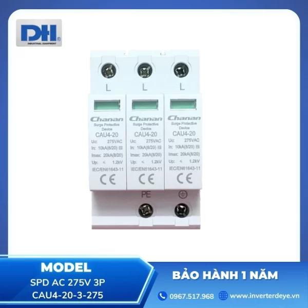 Nhằm đáp ứng nhu cầu sử dụng của hệ thống điện 1 pha và 3 pha, Solar DH cung cấp các dòng SPD Chanan AC 275V với cấu hình 2P, 3P và 4P.