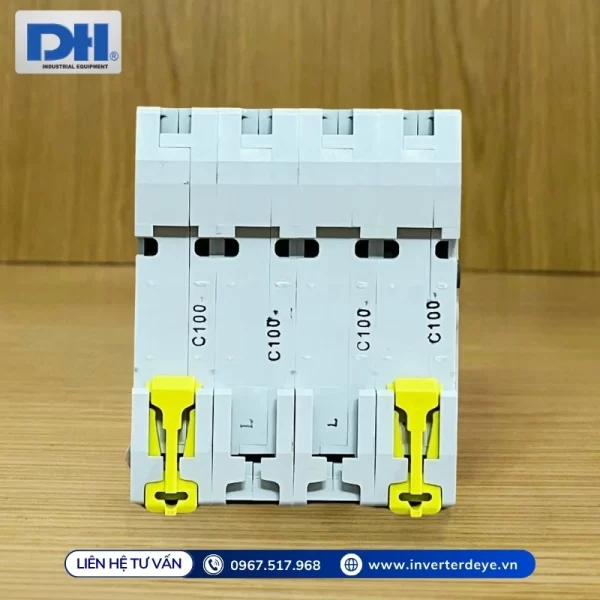 - Khả năng ngắt dòng vượt trội: Với dòng điện định mức 100A, MCB này có khả năng chịu tải cao. Đặc biệt, khả năng ngắt ngắn mạch định mức lên đến 6.000A (6kA), giúp dập tắt hồ quang an toàn khi có sự cố nghiêm trọng