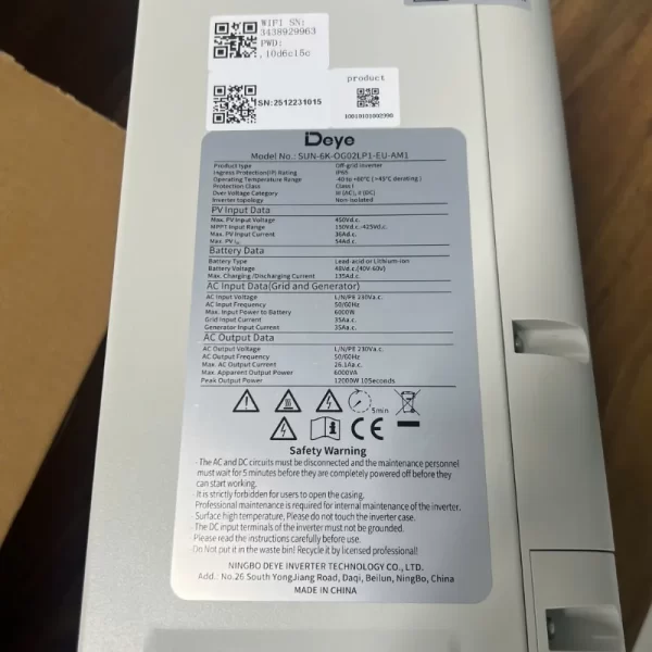 Inverter Off-Grid Deye 6kW 1 Pha | SUN-6K-OG02LP1-EU-AM1